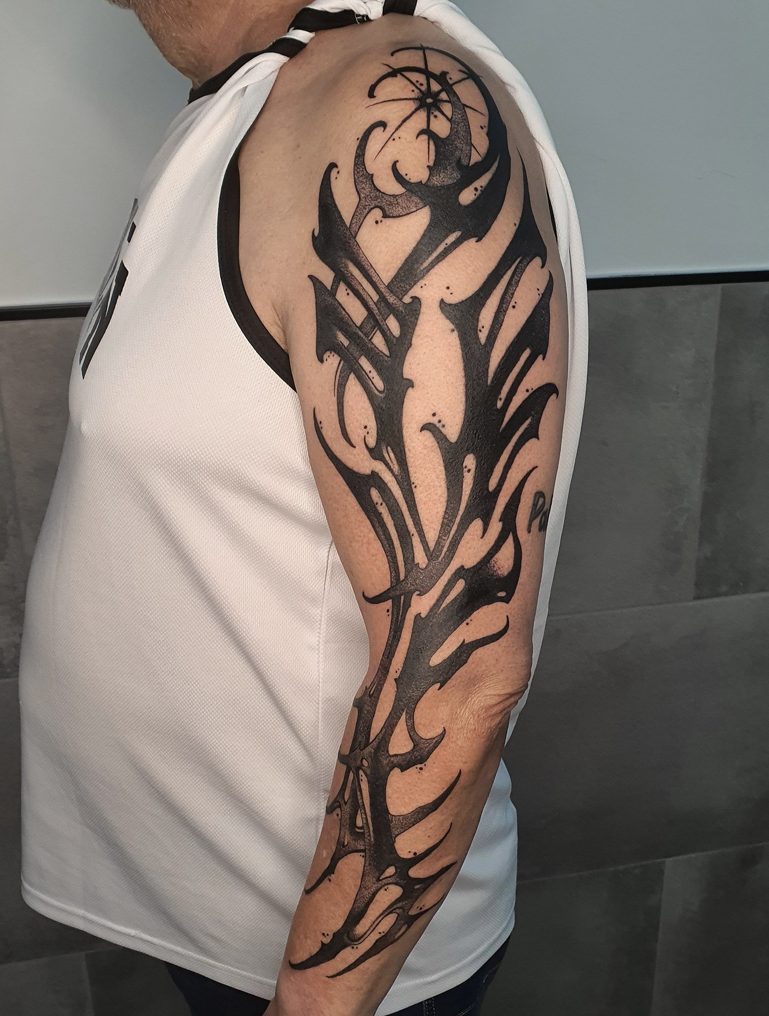 Su estilo se centra en el blackwork, el grabado y los diseños ornamentales y orgánicos, logrando tatuajes con fuerza visual, armonía y una identidad inconfundible.